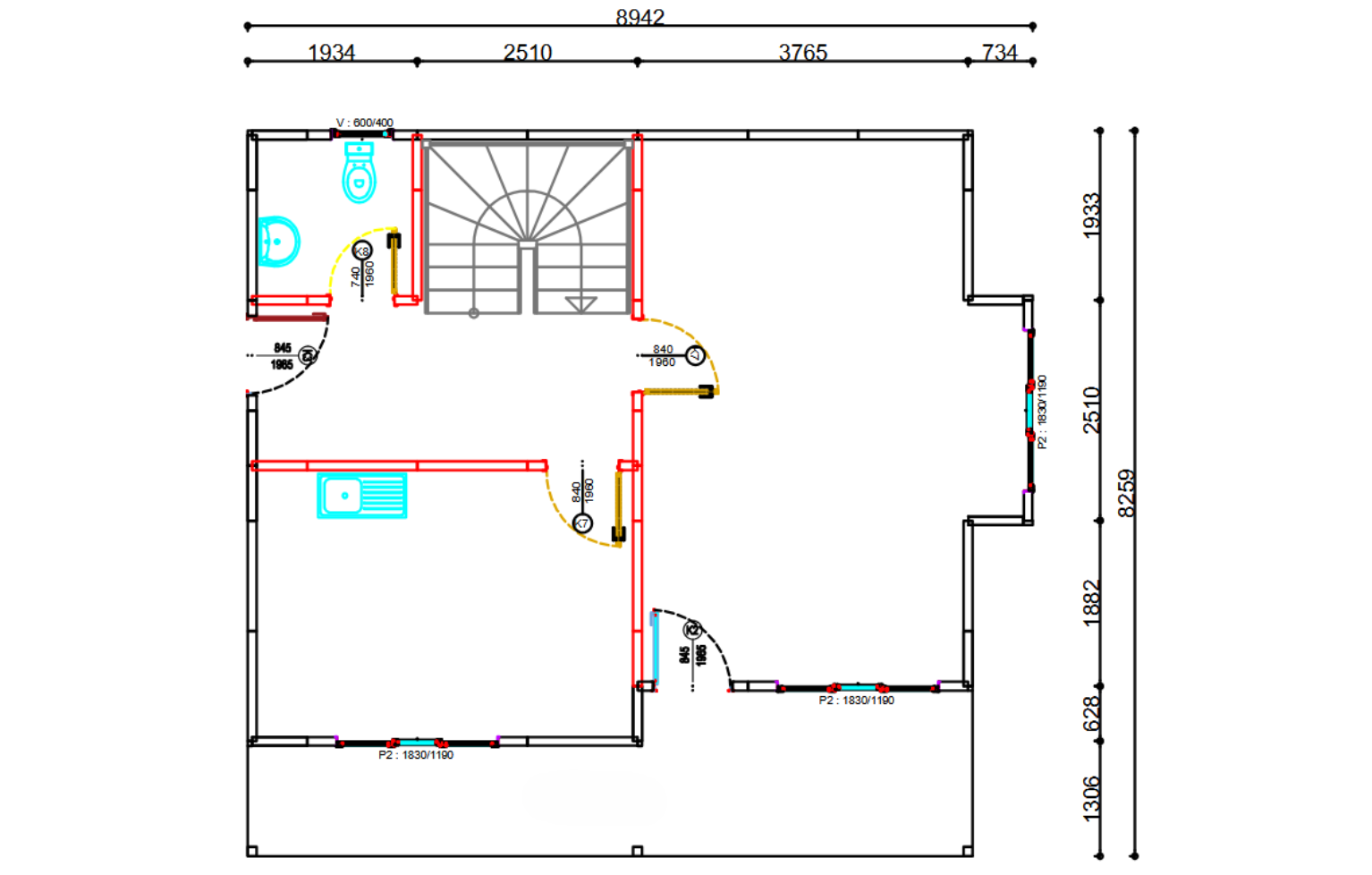 - Baie completă de 6 mp la etaj, WC de 4 mp la parter și hol de legătură (4 mp), care conectează fluent toate spațiile